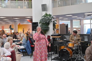 JUBILÆUM: Over 100 gæster var mødt op for at fejre Hovedbibliotekets 40-års jubilæum mandag. Jubilæet blev fejret med 80’er live-musik,